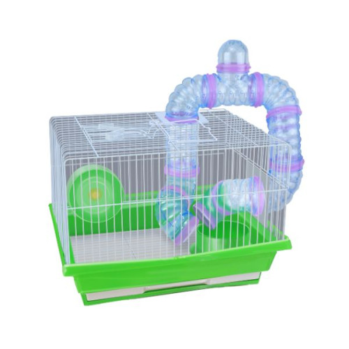 Accesorii incluse: bol pentru hrană – 1 bucată, roată – 1 bucată, suport pentru roată – 1 bucată, sticlă de apă cu suport – 1 bucată, cot din plastic drept – 2 bucăţi, cot din plastic curbat – 7 bucăţi, tunel cu trei canale – 1 bucată, tavan tunel – 1 bucată, conector pentru tunel – 12 bucăţi, sertar detaşabil pentru curăţarea periodică a cuştii – 1 bucată.